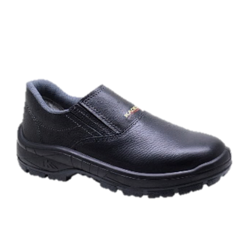 Calçado ocupacional tipo sapato, fechamento em elástico na lateral, confeccionado em couro hidrofugado curtido ao cromo, palmilha de montagem em não tecido montada pelo sistema strobel.